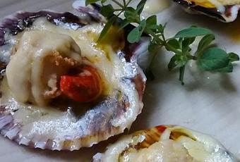 Una de ellas y la idea original era hacer ostiones o vieiras al pil pil, pero cuando estaban listos, y teniendo un edam delicioso en nuestras manos, probamos con uno para ver cómo quedaba y después de gratinado, nos encantó.