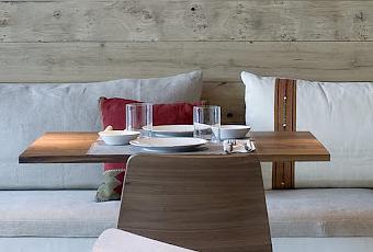 La silla modelo Morph de Zeitraum protagoniza el espacio junto con la combinación de textiles con exquisito gusto seleccionados de Tapicera Aranda a medida. El resto de muebles y lámparas de Vitra, Artemide, Herenhuis y Bellux de Idees Disseny y Materia Barcelona.