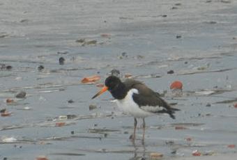 Ostrero euroasiático Haematopus ostralegus OystercatherSu nombre viene más bien del inglés, oystercather, el que pilla ostras, aunque en Asturies debe comer otra cosa y por eso se le llama "llampariego". Precisamente Asturias está en el límite sur de su área de distribución, con unas pocas parejas en el litoral occidental. En Gozón lo más normal es observar pequeños grupos pasando en migración frente a la costa en otoño.