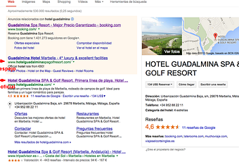 Pues a esta partida se ha incorporado un “new player” , que son Webs espejo, una especie de webs que funcionan con disponibilidad proporcionada por la Ota. Me llevé una sorpresa cuando vi una web posicionada con adwords y haciéndole la competencia al Hotel Guadalmina. ¿Que cachondeo es este? Pongo aquí el nombre de la web, pero no enlazada, lo que faltaba, que encima le chutemos un enlace. http://hotelguadalminaspagolfresort.com/