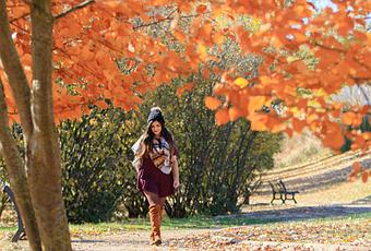 Comprenderéis que si de repente al señor otoño le da por aparecer y ponerse así de deslumbrante (justo ahora), tengo que aprovecharlo. Y eso hice el pasado domingo, cuando Manu y yo nos fuimos hasta el paseo del río y nos quedamos boquiabiertos de lo bonito que estaba todo. Me di cuenta de que era la ocasión ideal para enseñaros el mejor vestido de otoño del mundo.