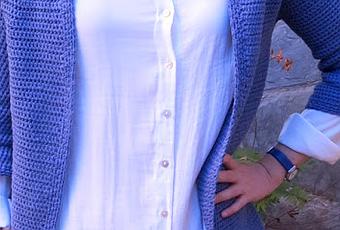 Digo otra porque este patrón es repetido. Aquí podéis verla en granate y con lana merino. Esta nueva chaqueta está hecha en algodón. La hizo mi madre y yo rematé los bordes (poca colaboración por mi parte, jeje). Este es uno de esos UFO's (UnFinished Objects) que tenía aparcados desde hacía mucho tiempo a falta de rematar. Me he propuesto terminar todas las cosas pendientes (que no son pocas) antes de comprar más lanas (que ganas no me faltan).