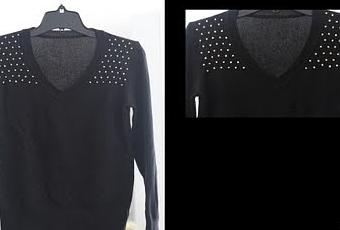 Esta remera de lanilla tenía dos aberturas: una en el frente y otra detrás. Dado que ese estilo era muy propio de la década del ochenta con sus asimetrías e irregularidades, Laura optó por colocar cierres en ambos lados y santo remedio.