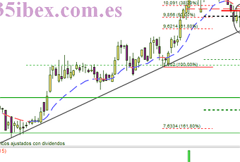 Indra está respetando su línea de tendencia alcista, con varios toques pero sin superarla en ningún momento, ahora la tenemos otra vez en la línea de tendencia.