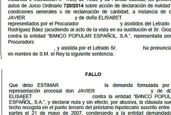 Aquí podéis ver el fallo de la sentencia conseguida contra Banco Popular en Las Palmas (Canarias):