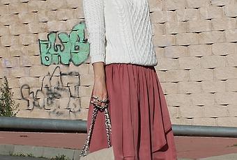 Y para acabar la semana...otra de las tendencias otoñales: la falda midi ( bueno...no es midi del todo porque técnicamente tendría que ser a mitad de la pierna y esta es justo por debajo de la rodilla ). Es plisada y ya tiene unas cuantas temporadas pero creo que puede servir para ilustrar la tendencia. La combiné con los zapatos de pulsera que me compré a finales de verano en rebajas en la web de Nuria Cobo y con otra compra de rebajas, el jersey blanco de Zara. Qué os parece mi interpretación de la tendencia ? Espero que os haya gustado. Muy buen fin de semana a tod@s! Nos vemos el domingo con una nueva película :)