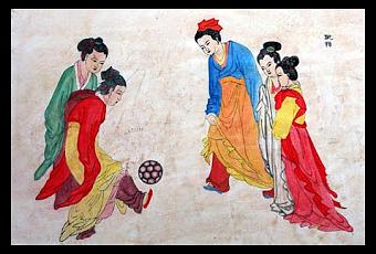 - El cu ju (de 'cu' chutar, y 'ju' balón), que ahora en China pronuncian 'zuqiu' (y que es como llaman al fútbol), es el precedente chino de este deporte. Parece que se juega al menos desde hace unos 3000 años, y no se sabe muy bien si tenía connotaciones rituales o bien si se trataba de un entrenamiento militar. Por las imágenes que hay de gente practicándolo, debía parecerse bastante a lo que es hoy día el fútbol: