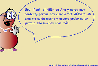 Cada año que paso con mi riñón, me sorprendo del tiempo que ha pasado conmigo, en mi cuerpo, tan a gusto y sin rebelarse para nada, a pesar de todo lo que hemos pasado juntos: gastroenteritis severas, un aborto, infecciones, hemorragias .........