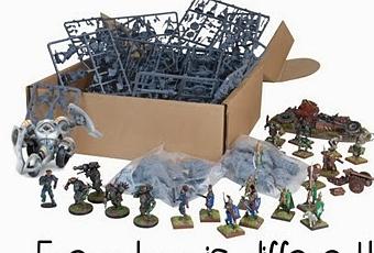 La verdad es que los de Mantic tiene unos puntos mas que geniales.Este año vuelve a hacer su Crazy Box,como el pasado.Es la versión de Mantic de un "auto-amigo invisible" que tanto se hace por estas fechas.Y que es un Crazy Box?Fácil,muy fácil.Por 20 libras(Bueno,19,99....El año pasado eran 25 libras o 24,99 libras como mas os guste.Este año lo han rebajado 5 libras!.Punto extra para ellos) que al cambio son unos 25 euros(El pasado fueron como unos 35 euros,creo) te dan una caja llena de figuras,que tiene un valor sumado muy superior.Cada caja es diferente,pero tiene algunas cosas fijas:Una figura de los "tipos grandes" aleatoria y un MVP aleatorio también de Dreadball,figuras de Warpath y Kings of War y un poster,ademas de matrices extras completamente aleatorias alguna sorpresa mas.Pero la composición de la caja es completamente aleatoria y diferente a la anterior y a la que vendrá después.