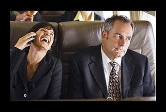 After a tiring day, a commuter settled down in his seat and closed his eyes. As the train rolled out of the station, a woman sitting next to him pulled out her mobile phone.