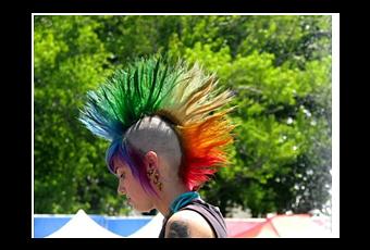 De golpe mi padre se quedó mirando fijamente una joven sentada cerca de él. La chica llevaba el pelo puntiagudo y teñido en distintos colores – verde, rojo, naranja y azul. Mi padre se quedó mirándola fijamente.