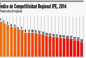 Lima provincias ocupa el primer lugar en capacidad a nivel nacionalLas regiones de Loreto y Puno, son las menos competitivas del país. Así lo indica el último Índice de Competitividad Regional (INCORE) 2014, elaborado por el Instituto Peruano de Economía (IPE). El informe resume que nueve de las diez regiones más competitivas a nivel nacional están en la costa.El Incore considera 41 variables de competitividad regional, agrupadas en 6 pilares: Entorno Económico, Laboral, Educación, Salud, Infraestructura e Instituciones, todos los cuales tienen igual importancia en la evaluación, por lo que existe una elevada correspondencia entre pobreza y competitividad.