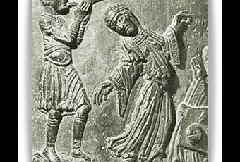 LOS TONELES y EL CÁLIZ, representan la bebida espiritual; sólo el hombre que acierta en su elección y bebe el agua de la vida, se salvará (Iglesia de SAN JUAN, SANTIBÁÑEZ DE RÍO, Salamanca).