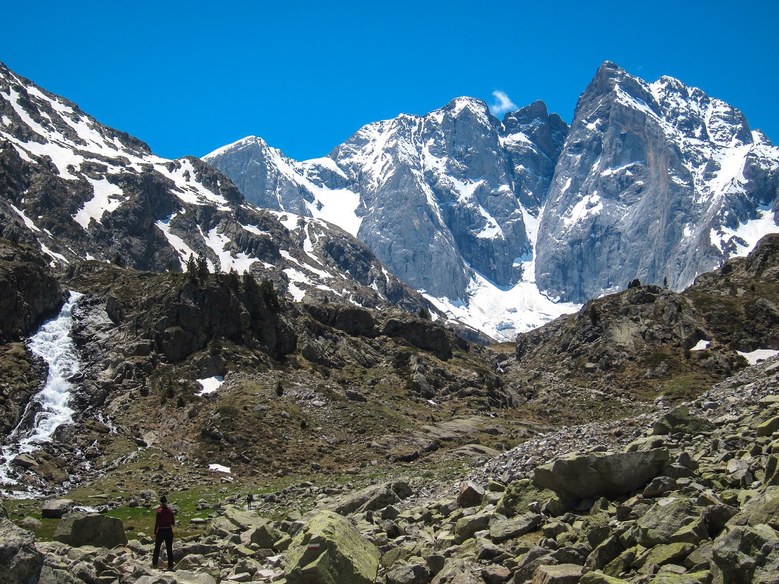 Superamos el resalte que nos separa de las Petites Oulettes el torrente se precipita en bella cascada a nuestra izquierda, mientras nosotros no podemos quitar ojo a la fascinante cara norte del Vignemale.