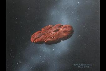 Ilustración artística de ‘Oumuamua con forma similar a panqueque. Crédito: William Hartmann.