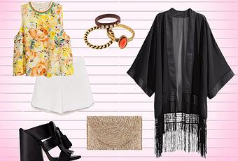 Shirt: H&M. Short: Zara. Kimono: H&M. Mules: Zara. Clutch: Blanco. Rings: Parfois