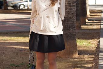 Llegan muchos eventos, entre ellos el cumpleaños de nuestra trendy Rocío, que lo vamos a celebrar hoy viernes todas las amigas, así que este look con detalles brillantes es ideal. Además se acercan las fiestas y para una comida también es perfecto porque no vas muy sexy pero tiene detalles como la espalda del jersey que le da el toque justo para ir comfy-chic y la falda de neopreno, ambos de Monaetes, pues esta Navidad como siempre optamos por moda de Castellón. Muchísimas felicidades Rocío, te queremos y lo sabes y vamos a celebrarlo ya!!!Many events arrive, like Rocio brithday today Friday that we celebrate this night with all the girlfriends. This bright look is nice for any event also with family because it’s perfect with little sexy touch on the back but comfy-chic with pullover and neoprene skirt by Monaetes, because we choose Castellon fashion. Happy Birthday to you Rocio, we love you and you know it so let’s celebrate right now!!!
