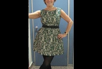 El outfit era bien sencillo ya que era un vestido,acompañado de un cinturón y zapatos negros.