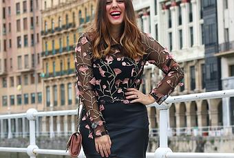 ¡Buenos y tardíos días de viernes! ¿Qué tal ha ido la semana? Aquí una que esta deseando acabar la jornada laboral de hoy y disfrutar :)Para acabar esta semana os traigo un post de noche que me tiene completamente enamorada. Sin duda la pieza más importante de este outfit es la blusa transparente con detalles florales, ¡es simplemente espectacular! Decidí combinarla con una falda negra de polipiel para darle todo el protagonismo y dejar así que sea el centro del outfit.Además aproveché para estrenar estos zapatos con pedrería tan especiales, y para mi sorpresa... ¡son comodísimos! También decidí combinar el look con este bolso rosa de Zara a juego con el top, ¡para mi el broche perfecto!¿Qué os parece esta elección?
