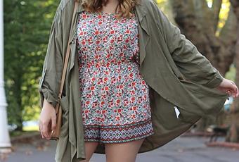 Y para hoy vamos con un outfit de diario sencillo y perfecto para otoño. Y sí, ¡viva! Todavía no estoy teniendo que ponerme medias y soy feliz, ¡vaya días de sol y calor que estamos teniendo por el norte! Por eso, nada mejor que un mono de flores con una chaqueta de entretiempo verde militar y un calzado bien cómodo para patearnos la ciudad. ¿No os encanta poder alargar la temporada de enseñar pierna? ¡Estoy encantada con ello!
