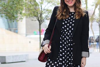Para hoy os traigo un outfit primaveral con uno de mis vestidos de lunares favoritos. Como veis ya empieza mi época de enseñar piernas ;) Para esta ocasión nada mejor que una americana básica, y unos de mis botines más cómodos. ¿Qué os parece la mezcla? Además me encanta el toque de este bolso tricolor, ¡le da muchísima energía! ¡Disfrutad mucho del fin de semana amores!