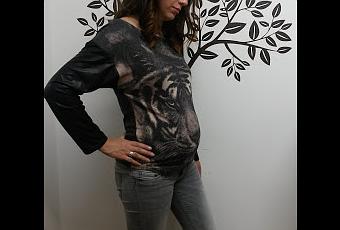 Partes de arriba premamá no compré ninguna, fui utilizando camisas y camisetas que me quedaban más flojas y ya está, ya que algunas más apretadas, si, las podía poner, pero no me gustaba que se me quedara la barriga al aire al moverme y así.