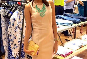 Este fue el look que utilicé para el cocktail, todo de la marca Forever 21… Quise darle vida al vestido color nude con el collar XL en color menta, y en contraste con el calzado estilo D’Orsay en colores violeta, rosado y nude.