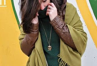 Hoy os muestro un look en tonos verdes y marrones junto con mi nuevo bolsito de Camomilla Milano y su llavero de perro. Llevo jeans básicos con sweater en verde botella y cuello vuelto, sneakers cómodas del mismo color, cazadora de cuaro marrón y bufa-manta en verde para combatir el frio que estamos teniendo estos días.