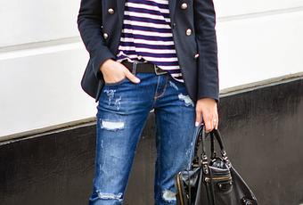 Y estas dos imágenes, para estos días en los que aún refresca, Lisa Rvd con superposición de prendas como es habitual verla en sus looks, y Prosecco & Plaid con boyfriend jeans.
