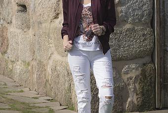 Hooola!!! Qué tal?? Por fin es viernes!! Para mí, este fin de semana poco tendrá de descanso, pero con ilusión y muchísimas ganas (sólo esperando que la salud me acompañe mínimamente) afronto estos próximos días.Hoy os enseño este outfit que saqué el otro día, cuando misteriosamente hizo algo de calor en Coruña y pude estrenar esta bomber granate que me regaló mi amiga Silvia (sí, lo sé, mi amiga Silvia me regala de todo) Ayer mismo, nos fuimos a una buena sesión de spa que nos sentó de perlas!!! Y es que con amigas así...¡¡¡no se necesita nada más!!!!Y para acabar, como siempre, os dejo el coste del modelaje de hoy:- Gafas de Sol: Roberto Martín- Bomber (Zara): New! regalo de mi amiga Silvia- Camiseta (Lefties): 5€. Old. Otros outfits diferentes con esta camiseta aquí, aquí, aquí y aquí- Jeans (Stradivarius): 12.99 €. Old. Otro outfit diferente, aquí y aquí- Botines (Natura): 29.95 €. Otro outfit aquíCoste Total: 47.94€¡¡¡Un besazo enooorme , feliz fin de semana y millones de gracias por leer cada día Fashion Low Cost!!Hello!!! how are you?? Finally Friday!! I will have a relaxing weekend, but so so happy and looking forwards to it (I hope my health will be simply ok)Today's look it from a few days ago, a day that apparently was hot in Coruña and I could wear this burgundy bomber jacket, a gift from my friend Silvia (I know my friend Silvia gives me a lot of gifts) actually yesterday we went for a day at the spa that it was just SO SO great!!! Good friends are treasures…don't need anything else…And finally here are the details and the cost of today's outfit low cost:- Sunglasses: Roberto Martin- Bomber jacket: New (gift from Silvia)- T-shirt (Lefties): €5 . Old. More here, here, here & here- Jeans (Stradivarius): €12.99. Old. More here y aquí- Boots (Natura): €29.95 More hereTotal cost: €47.94Huge kisses and hope you have a lovely weekend!! Thank you so much for reading Fashion Low Cost everyday!!!Translated by Elena Loves This