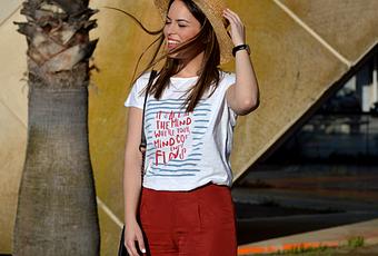 all credits:Camiseta / T-shirt: Lookiero HEREPantalón /Pants : Lookiero HEREBolso /Bag : Mango (old)Alpargatas / Spadrilles: Marypaz HERECanotier: H&M (old)Reloj /Watch : Daniel Wellington HERELaca de uñas / Nail polish : OPI "Alpine snow" L00 HERE