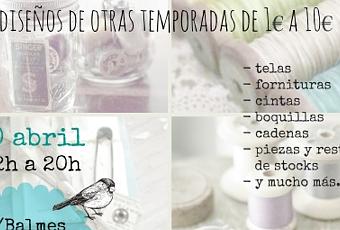 El sábado 20 de abril, de 12 a 8 de la tarde, en Balmes 9 (1º 1ª) os esperamos con retales, fornituras, hilos, piezas antiguas, boquillas, cadenas.....