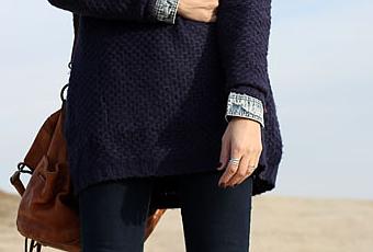 I chose this navy oversized Iskoa sweater to start of the week. I am wearing it with an old pair of dark denim jeans, a denim Suiteblanco shirt and an embroidered