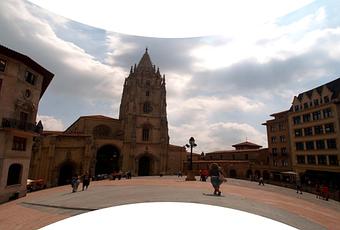 Juan me guardaba varias sorpresas, la primera era una entrevista "aquítepilloaquítemato" que me hizo junto a la escultura de La Regenta, tan representativa de la ciudad, y la Catedral de San Salvador como testigo de lujo.