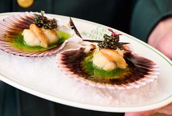 Vieiras con caviar en Oyster Menorca Barcelona. DANIEL SCHÄFER