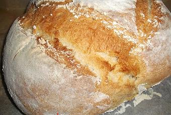 - Se hornea a 200º durante unos 40 minutos y con vapor. En mi horno dejo abajo un recipiente metálico con agua para crear ese vapor que formara la corteza dura y crujiente.