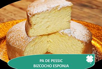 Ella titula esta receta simplemente como 'bizcocho' y sí que lo es pero tiene la textura de un 'pa de pessic' típico de Vic.No lleva aceite, ni yogur, ni impulsor. Solo harina, azúcar y huevos.