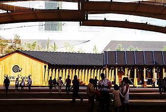 El enfoque intelectual y la filosofía radical de Slow Food fueron una de las fuentes de inspiración del plan director de la Expo. Fundada en Italia en la década de 1980, se trata de una organización ecogastronómica presente en 150 países que respeta, entre otras cosas, el equilibrio del ecosistema y la biodiversidad. También ha sido una de los organizadoras de la Expo, circunstancia que, sin embargo, no le impide ocupar el emplazamiento más alejado (y más tranquilo) del recinto.
