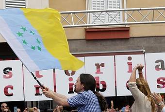 Que la candidata de Unidas Podemos a la presidencia de Canarias y el líder de Podemos, Pablo Iglesias, agiten la bandera independentista canaria, de siete estrellas verdes, es una agresión a España que repugna en toda la nación y que ni siquiera el insensible y antiespañol gobierno del PSOE puede soportar.
