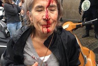 Una mujer herida por la policía en Cataluña, en medio del referendum. Más de 300 heridos.