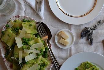 Vamos con un rico plato de pasta acompañado por una versión de la tradicional salsa italiana al pesto. Mantenemos algunos de sus ingredientes principales, pero en menor cantidad, y le damos protagonismo casi absoluto a los guisantes, que quedan de maravilla con los piñones y la albahaca. Un plato ligero, refrescante y que seguro que va a encantar en vuestras mesas.