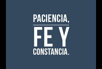 Hola, paciencia, fe, constancia bonita combinación difícil de aplicar pero una vez aplicada el fruto de todo esto en nuestra vida es enorme, así debe ser la vida en Cristo con estas características trabajando en nuestra vida recuerda: