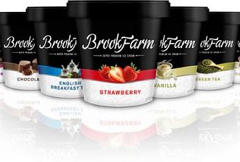 La agencia SHFT(Indonesia), es la encargada de la imagen comercial de la linea de helados Brookfarm, marca PT. Diamond cold storage, desde el logo hasta el empaque, donde la palabra predominante es la elegancia.