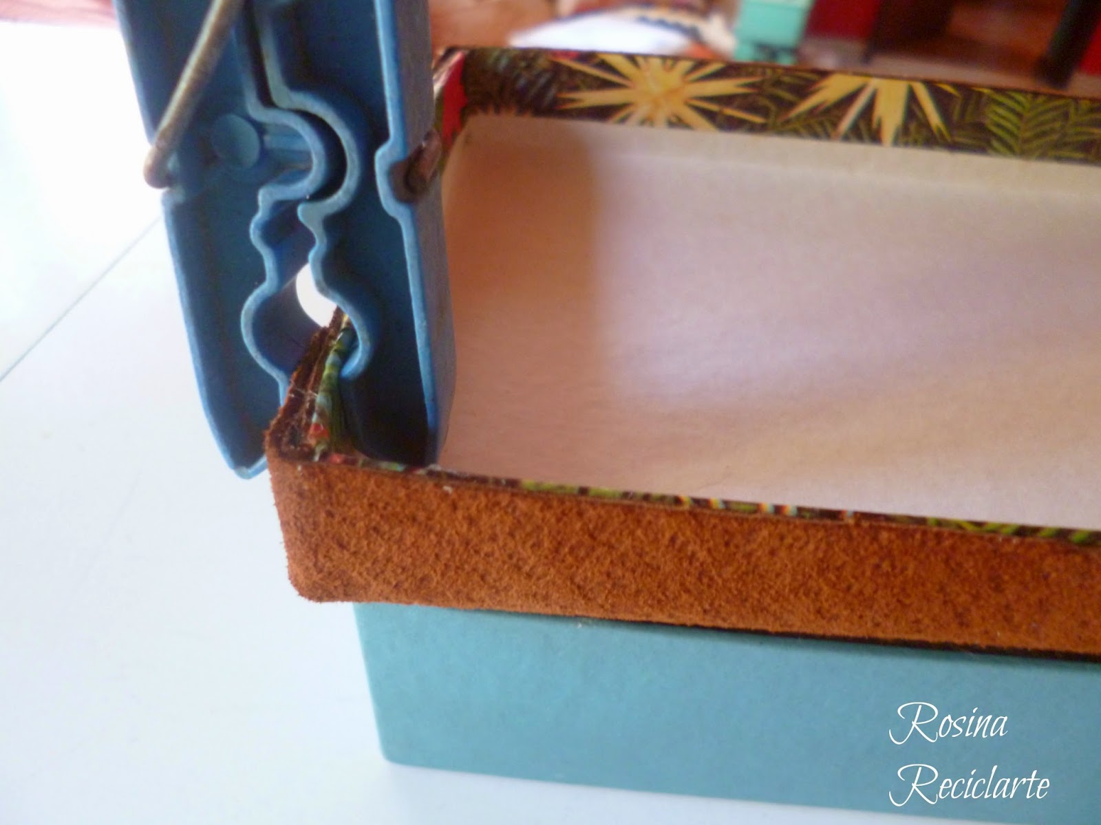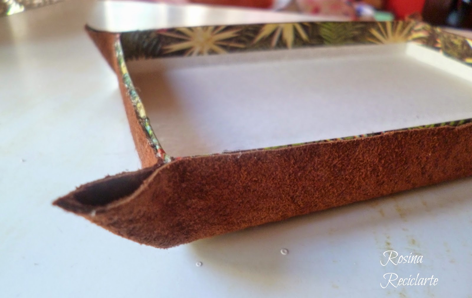 La parte de abajo la dejé sin forrar,el celestito no estaba tan mal y combina bárbaro con el chocolate del cuero de carpincho,descarte de una fábrica de bolsos