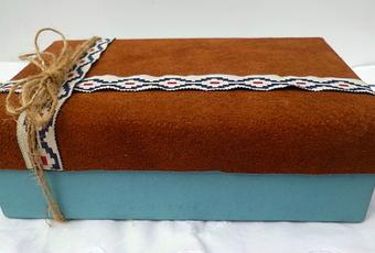 Hace unos meses necesitaba un packaging para un regalo masculino y como ninguna de las cajas tenía un diseño medianamente varonil y además tenía retazos de cuero (que también me regaló Angi.Si,te dije que es mi proveedora estrella!)