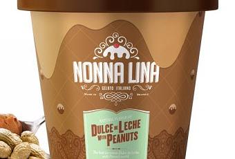Con residencia en Brasil, la heladería Nonna Lina, elabora el mejor helado o gelato, al estilo del sur de Italia, un producto con mas de sesenta años de tradición, la agencia brasileña Mr. Conde studio, dio origen a su logo y empaque, en la etiqueta predominan los gráficos vectoriales y la gradación de un mismo color, cambiando según el sabor del helado.