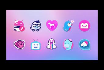 Una mezcla mágica de colores púrpura, rosa y azul con un toque de verde azulado sobre la iconografía uniforme diseñado, cientos de fondos de pantalla incluido, con el apoyo de todos los lanzadores populares.