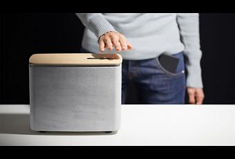 El altavoz se conecta por Bluetooth con tu dispositivo móvil y podrás cambiar de tema musical moviendo la mano para los lados o aumentar y disminuir el volumen manteniendo la mano sobre el sensor. Estos simples comandos gestuales hará que controles a “P.A.C.O.” sin tocarlo. El diseño combina dos elementos centrales en arquitectura pero poco comunes en tecnología: cemento y madera.