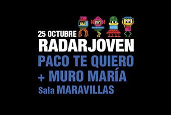 Dentro del ciclo de conciertos Radar Joven podremos ver a Muro María y a Paco te quiero en la Sala Maravillas. La programación de conciertos en Radar Joven no para y en unos días, podremos ver a dos buenas propuestas.Muro María tienen una fecha única en la Sala Maravillas, una fecha que tendrá ese sabor a concierto especial, no solo por la fecha; la formación tiene las ideas claras y ganas de presentar sus temas. Paco te quiero es la otra propuesta de la jornada y es que los de Barcelona tienen esa frescura tan necesaria en los escenarios que mostrarán en este show.