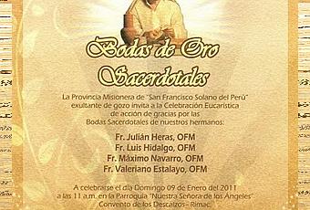 Nos encontramos en la Misa de sus Bodas de Oro, el domingo 9 de enero, 11 de la mañana, Parroquia de Nuestra Señora de los Ángeles, Convento de los Descalzos del Rímac.